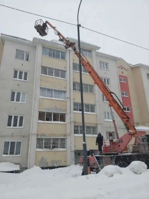 Кышкы вакытта шәһәрдә хезмәт күрсәтүче оешмалар күпфатирлы йортларның түбәләрен кардан һәм боздан чистарту эшләрен алып баралар.
